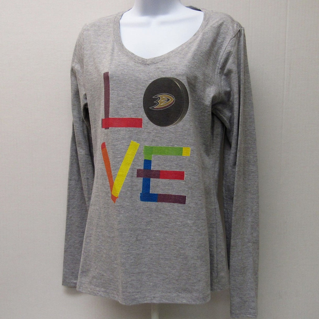 Anaheim Ducks Fanatics Branded Women's Hockey Is For Everyone Love Square Long Sleeve V-Neck T-Shirt – Heather Gray