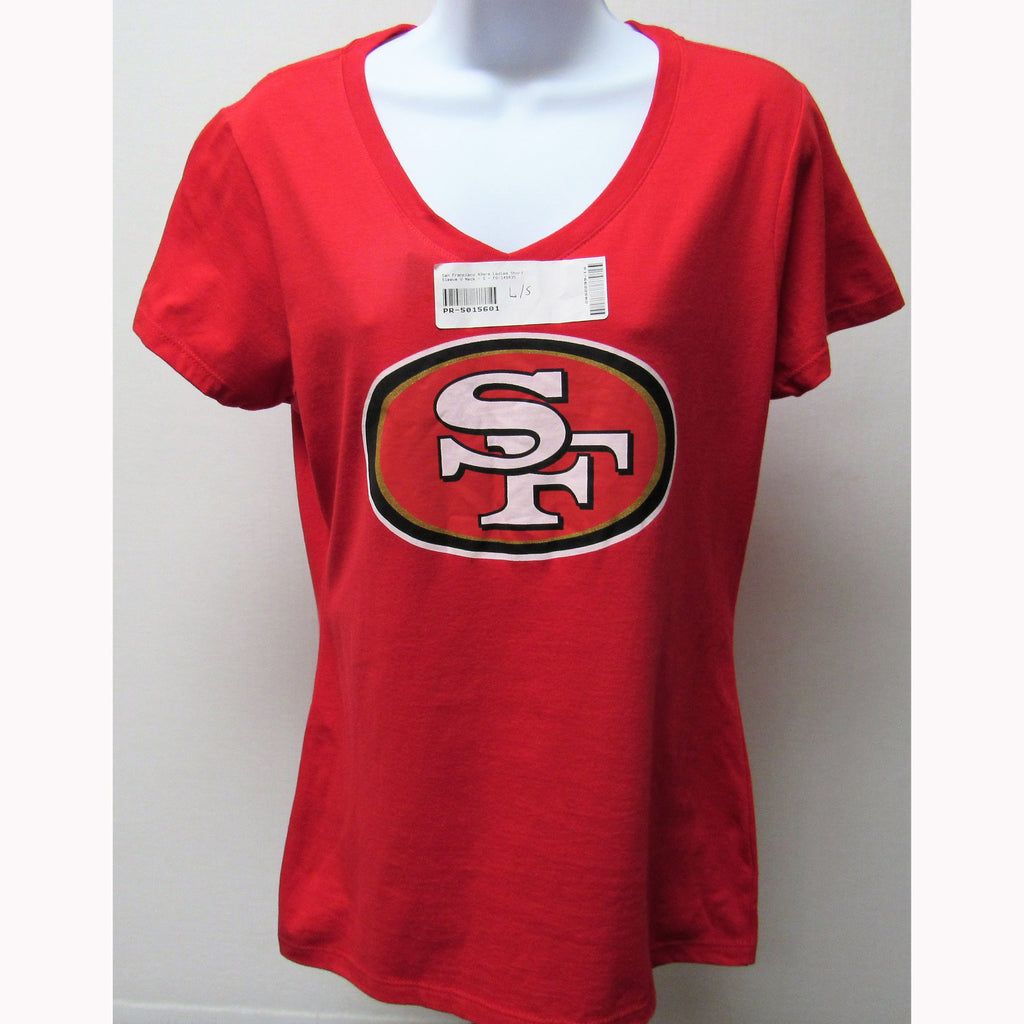 San Francisco 49ers Primary Logo S/S V-Neck Red - Women